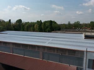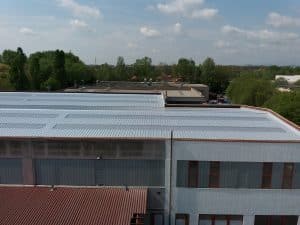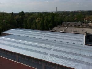 - Fornitura e posa di nuova copertura composta da nuova linea di listelli in legno 5×4 cm, nuova coibentazione in pannello di lamiera colore naturale spessore 40 mm;