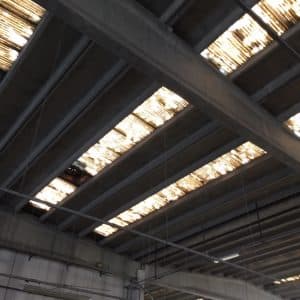 - Installazione di parapetti per la messa in sicurezza della copertura con la realizzazione di castelletto di carico per la salita e discesa degli operai addetti, Rimozione della copertura esistente in Amianto e della lana di roccia posta sotto di essa;