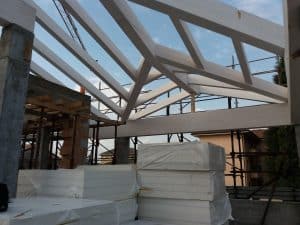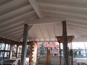 – Fornitura e posa di nuovo struttura in legno d’abete pretagliato colore bianco con perline in legno;