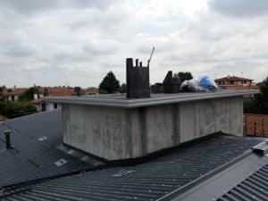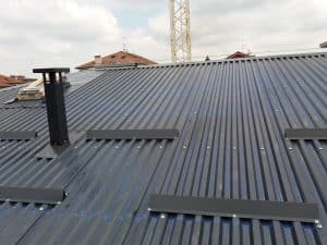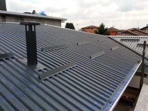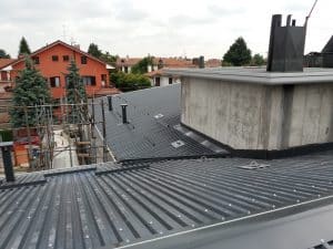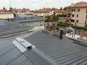 – Fornitura e posa di lastra G9 in alluminio colore antracite e relativa lattoneria in alluminio 10/10 colore antracite per scossaline, ferma neve, colmi e canali di gronda;