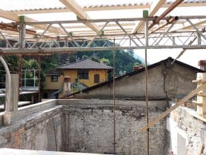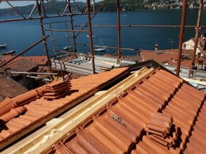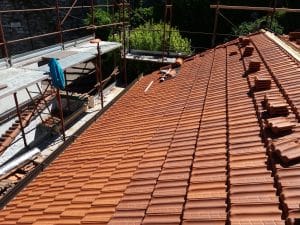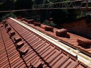 – Rimozione del manto di copertura esistente composto da tegole, listelli e lattoneria in lamiera;