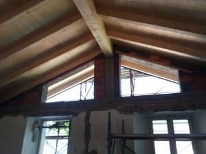 - Fornitura e posa di nuova copertura in tegole posate su listello in legno sezione 5×4 cm;
